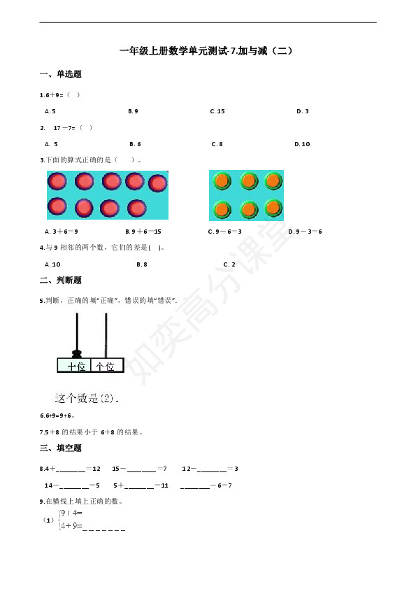 下一篇:一年级上册数学第五单元测试-位置与顺序 北师大版