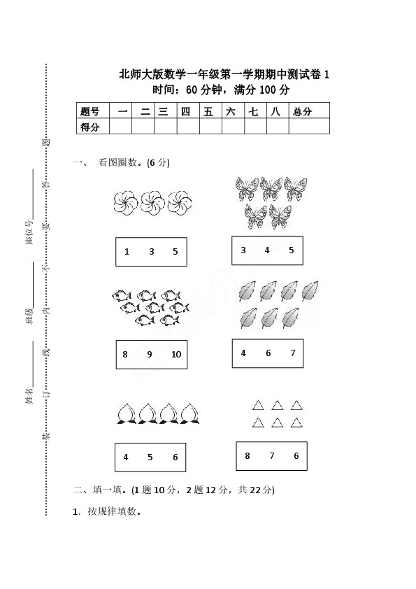 下一篇:北师大版小学一年级上册数学期中测试题及答案