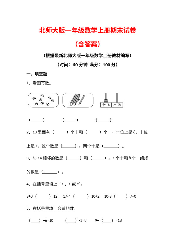 下一篇:北师大版一年级上册-数学期末考试试题卷