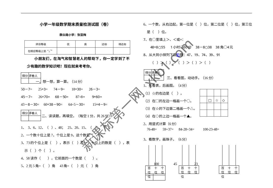 下一篇:北师大版一年级上册数学期末试卷