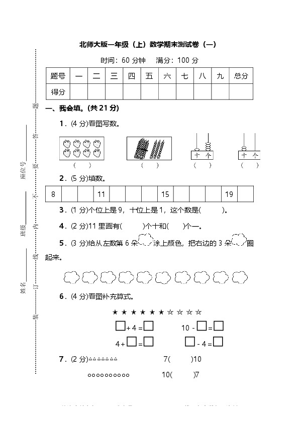 下一篇:北师大版小学一年级数学上册期末测试试卷及答案