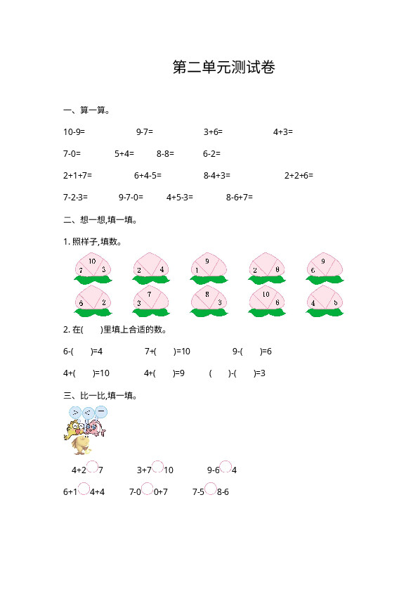 下一篇:一年级上册-西师版-数学第二单元测试卷试题