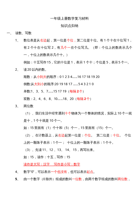 下一篇:一年级上册上学期数学期末复习方法建议