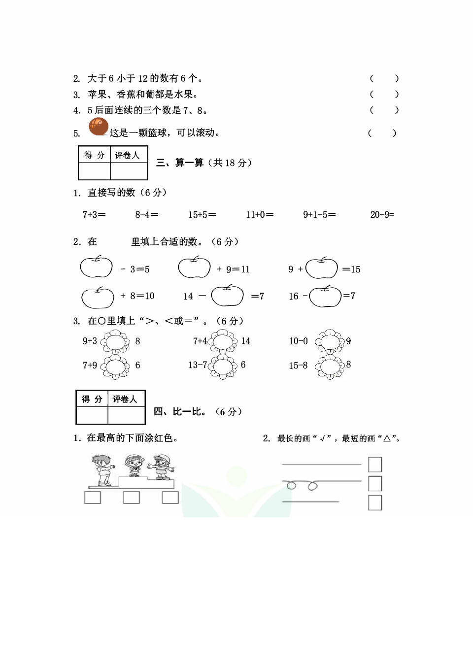 河北省张家口怀安县数学一年级第一学期期末试题 2020-2021学年(冀教版,含答案) 资料为PDF格式,请下载后使用相应软件打开。