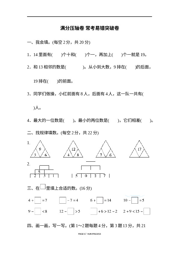 上一篇:河北省张家口怀安县数学一年级第一学期期末试题 2020-2021学年(冀教版,含答案)