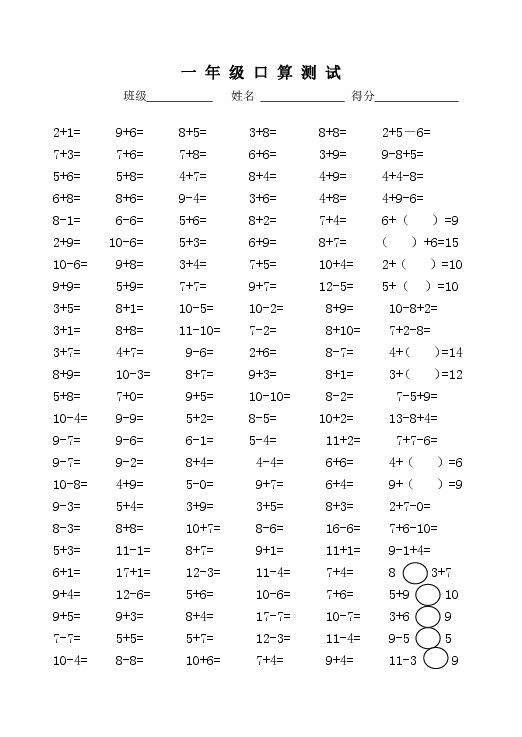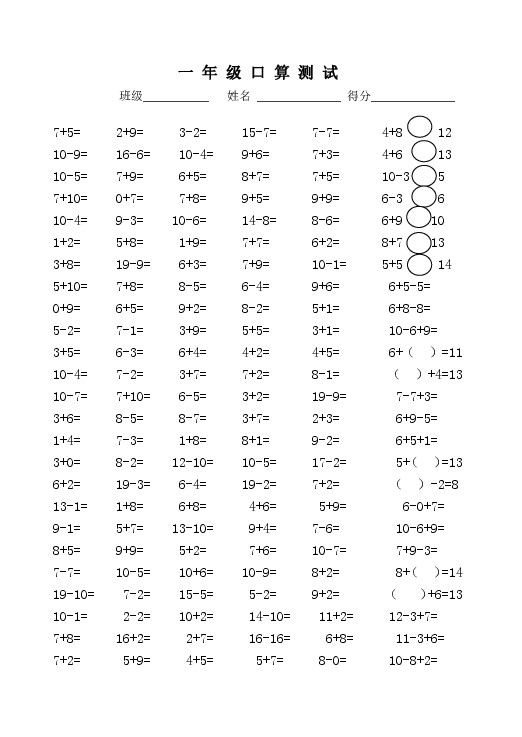 下一篇:人教版小学一年级数学口算题卡(可打印)