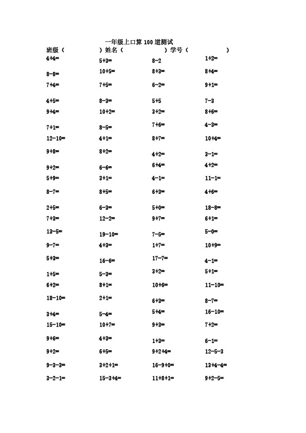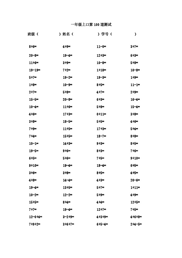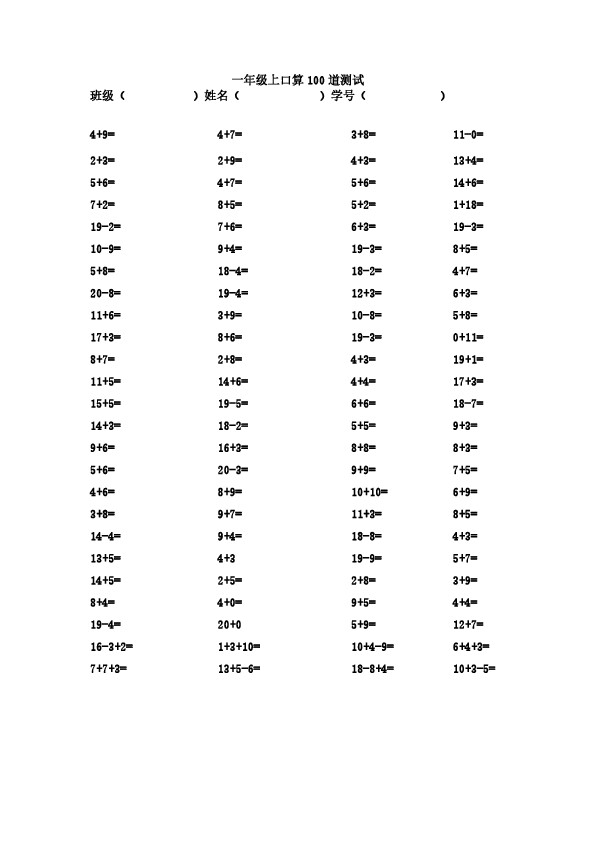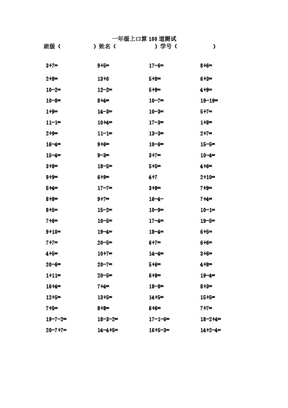 上一篇:人教版小学一年级数学口算题卡(可打印)