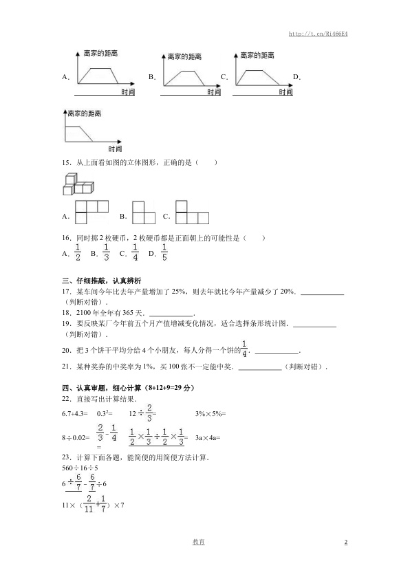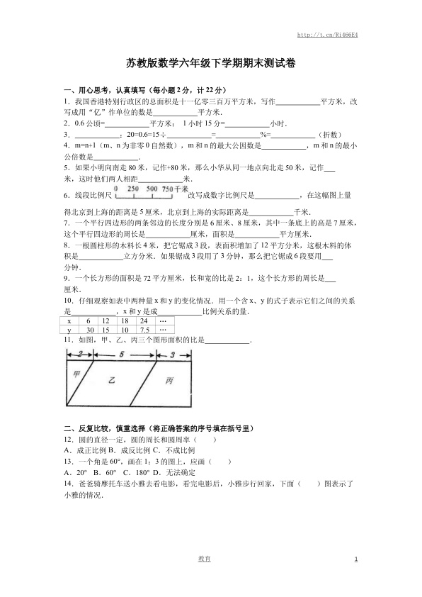 下一篇:苏教版数学六年级下学期期末测试卷5
