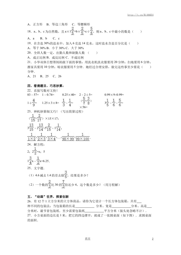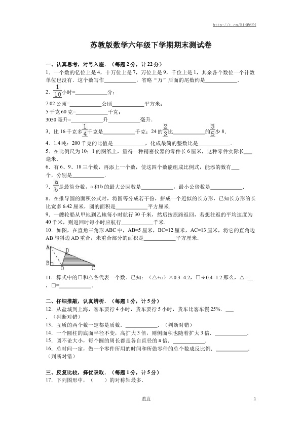 下一篇:苏教版数学六年级下学期期末测试卷6