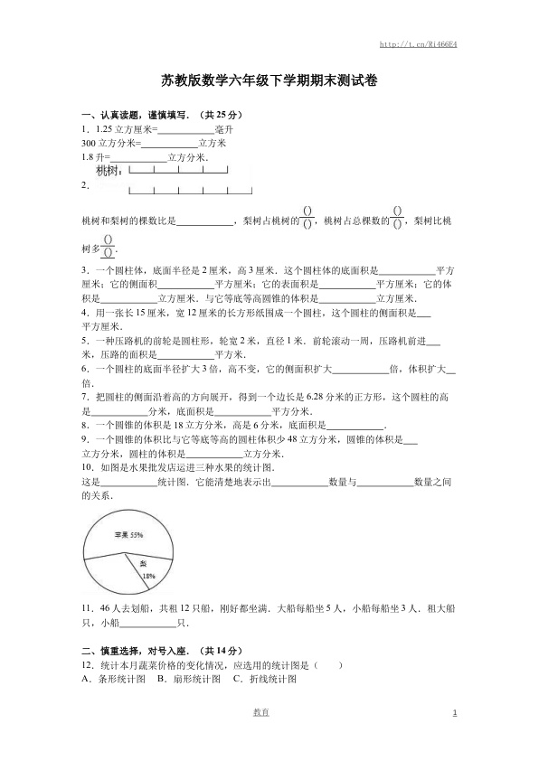 下一篇:苏教版数学六年级下学期期末测试卷9