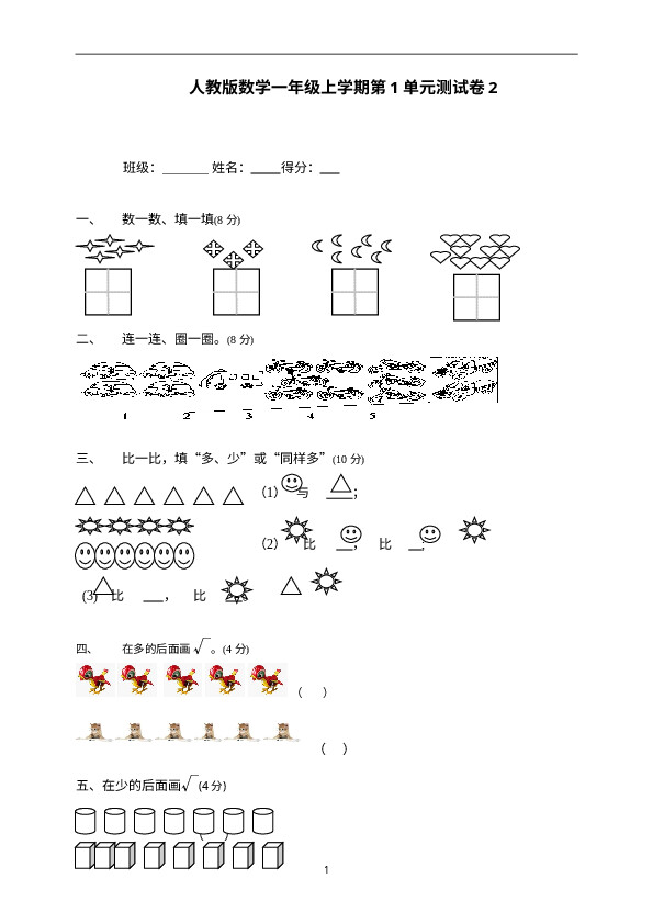 上一篇:一年级上册上学期-人教版数学第一单元测试卷1+答案版
