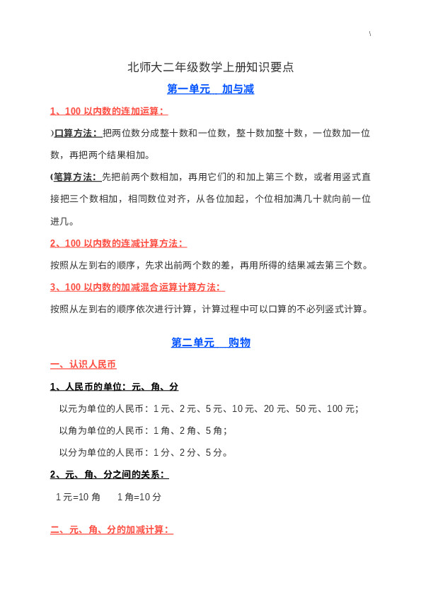 上一篇:二年级数学(上册)北师大数学重点知识点汇总
