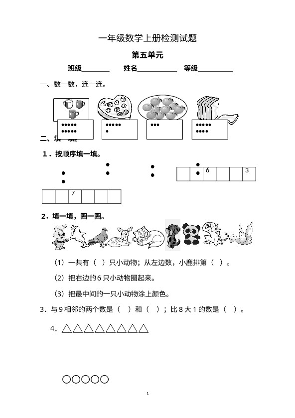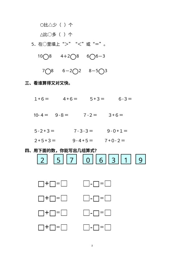 下一篇:人教版小学数学一年级上册第5单元检测卷2
