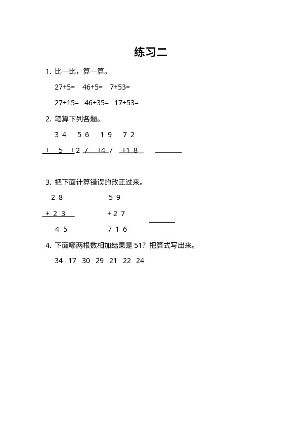 上一篇:二上数学第二单元课时练习-2-1-3 两位数加两位数(进位)笔算