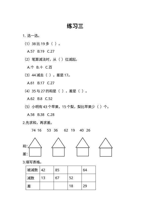 下一篇:二上数学第二单元课时练习-2-2-4 求比一个数多(少)几的数是多少