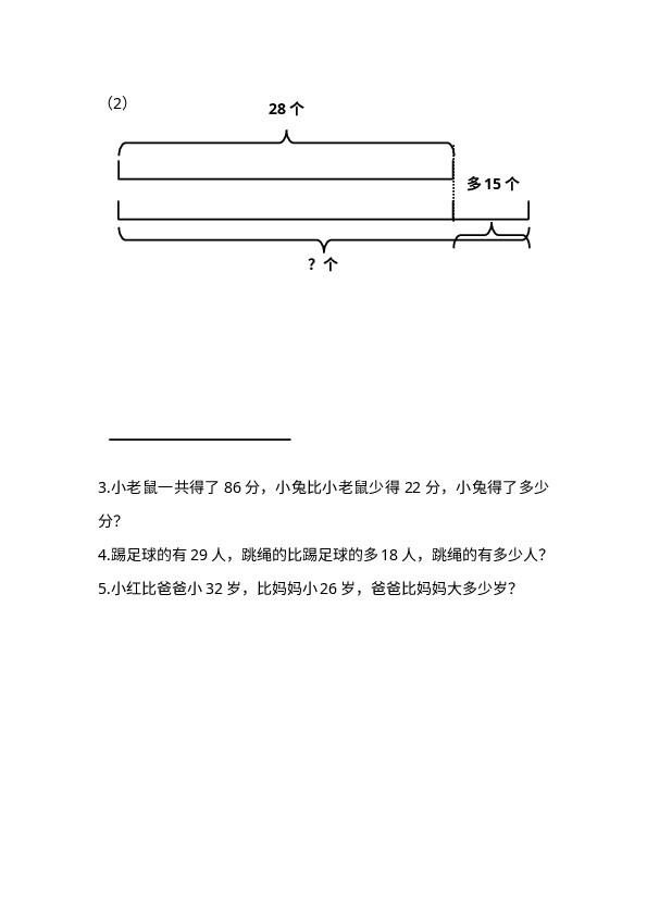 二上数学第二单元课时练习-2-2-4 求比一个数多(少)几的数是多少