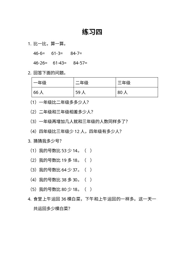 上一篇:二上数学第二单元课时练习-2-2-4 求比一个数多(少)几的数是多少