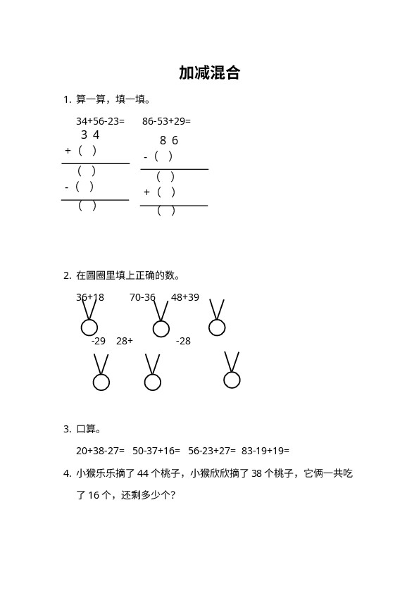 下一篇:二上数学第二单元课时练习-2-3-4 含有小括号的加减混合运算