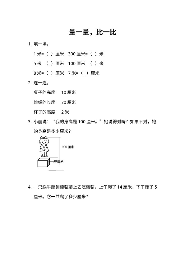 二上数学第六单元课时练习-6-13 量一量,比一比