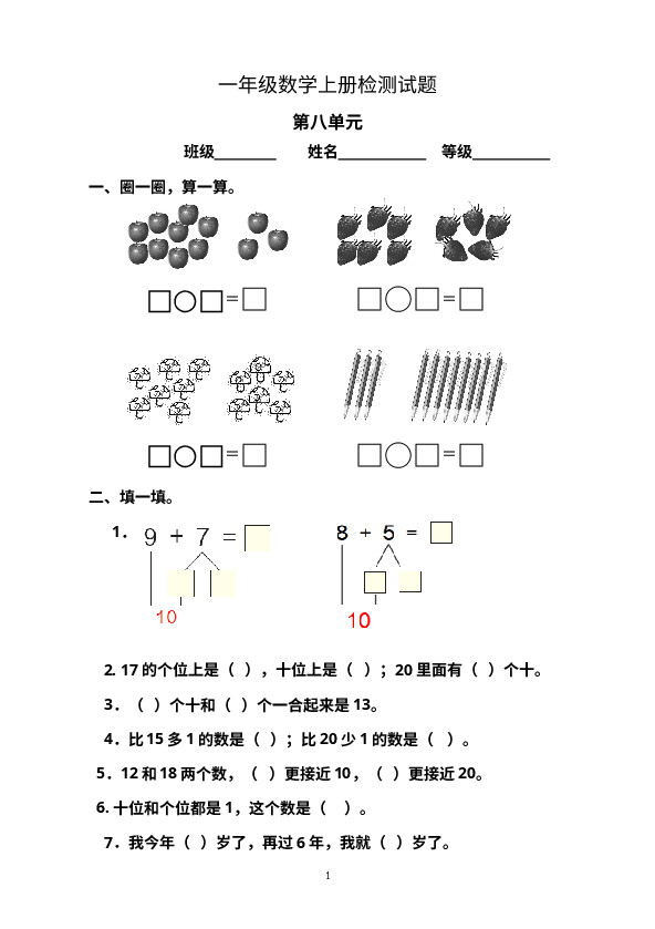 下一篇:人教版小学数学一年级上册第8单元检测卷2