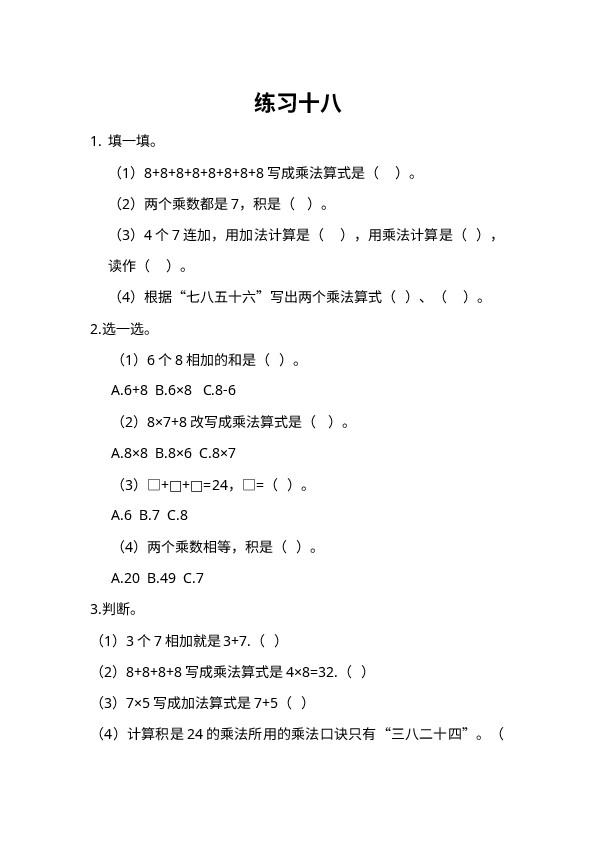 下一篇:二上数学第六单元课时练习-6-5 用8的口诀解决问题