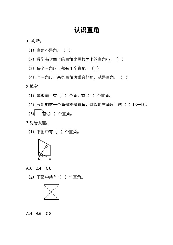 下一篇:二上第三单元课时练习-3-3 认识锐角和钝角