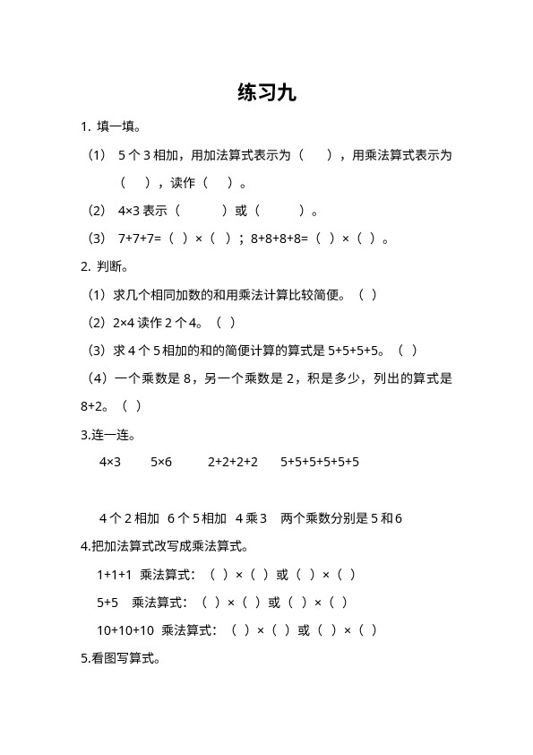 下一篇:二上第四单元表内乘法课时练习-4-2-1 5的乘法口诀