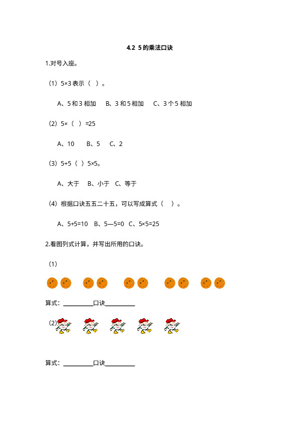 下一篇:二上第四单元表内乘法课时练习-备选4-3 2、3、4的乘法口诀