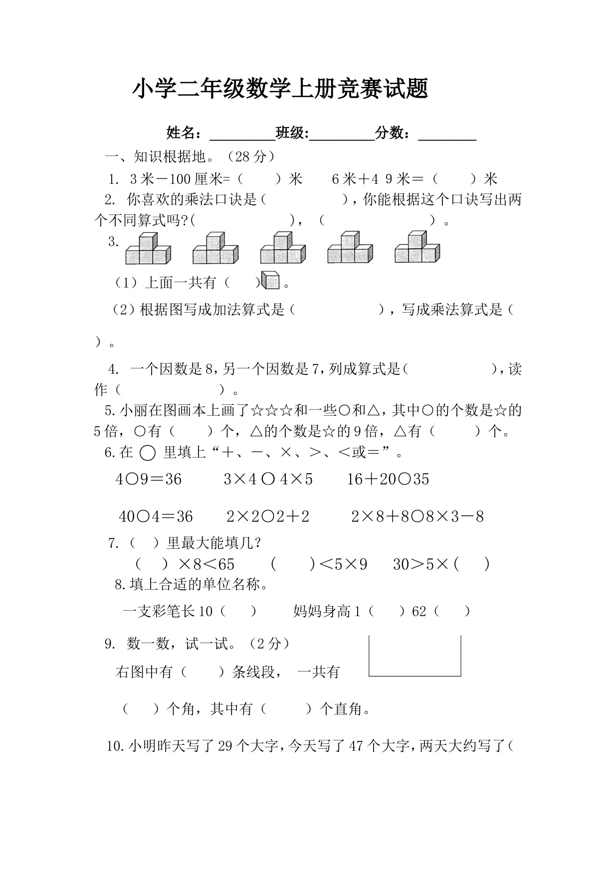 上一篇:人教版二年级数学上册专项练习:竖式计算