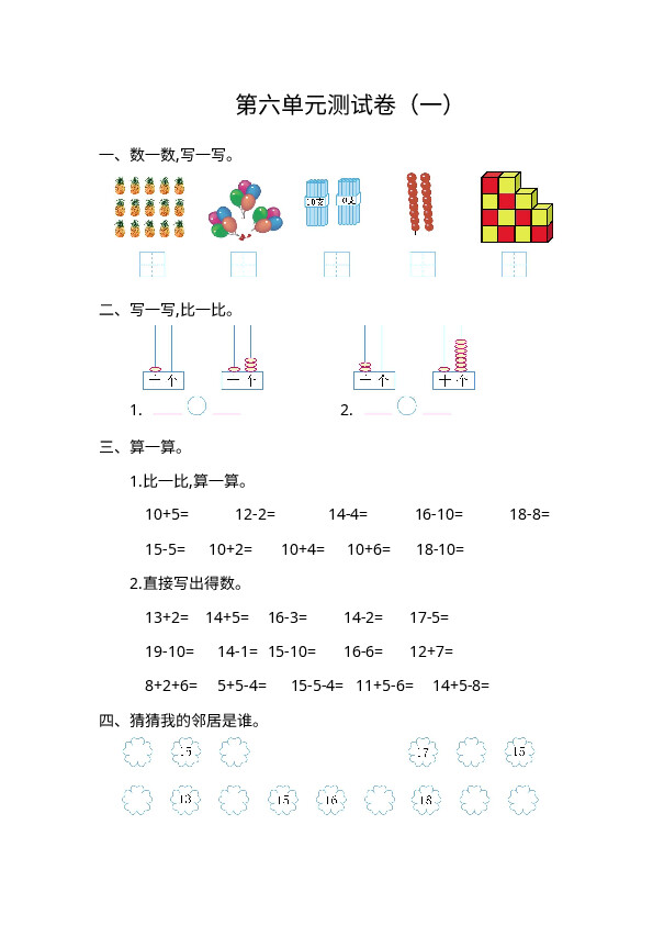 下一篇:人教版数学一年级上册第六单元 11~20各数的认识测试卷(二)