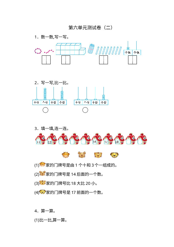上一篇:人教版数学一年级上册第六单元 11~20各数的认识测试卷(一)