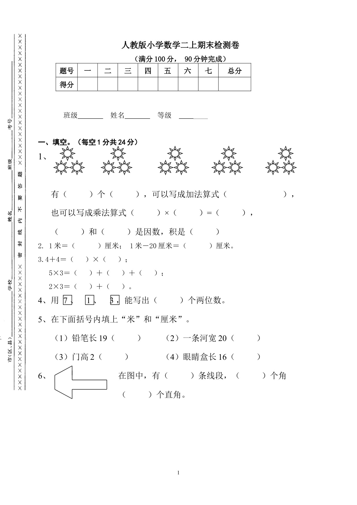 下一篇:人教版二年级数学上册期末检测卷 (2)