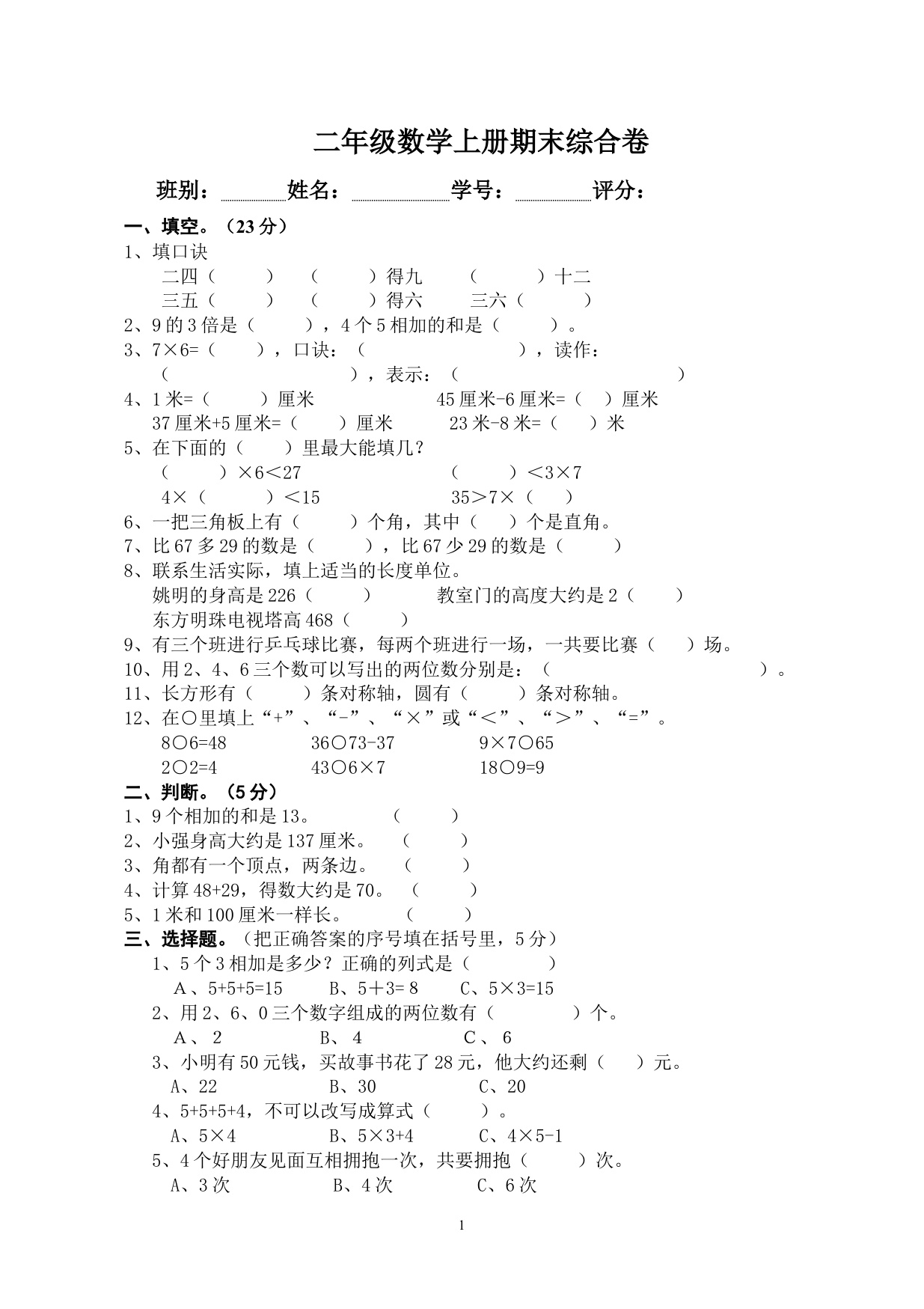 下一篇:人教版二年级数学上册期末考试试卷 (11)