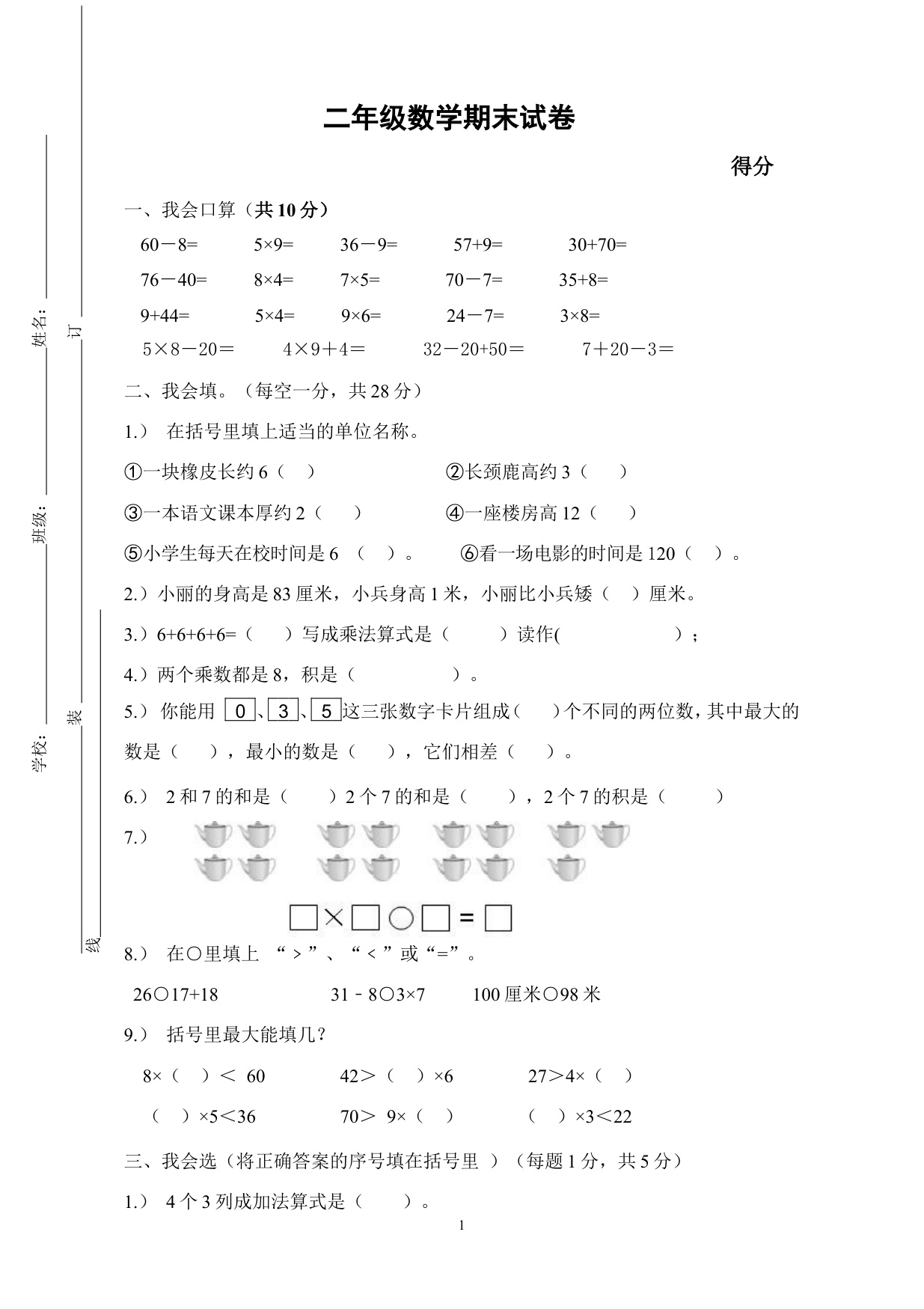 下一篇:人教版二年级数学上册期末考试试卷 (9)