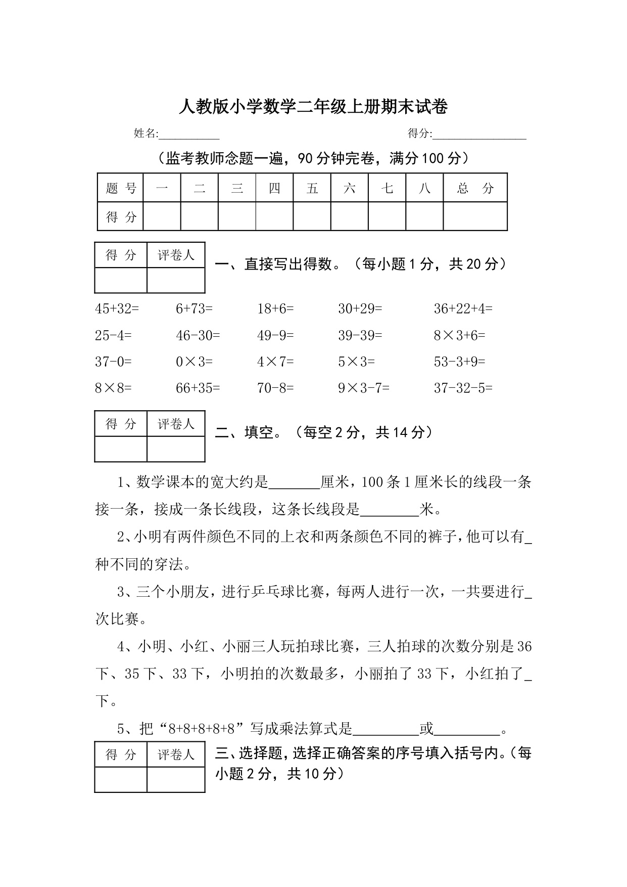 下一篇:人教版小学数学二年级上册期末试卷10