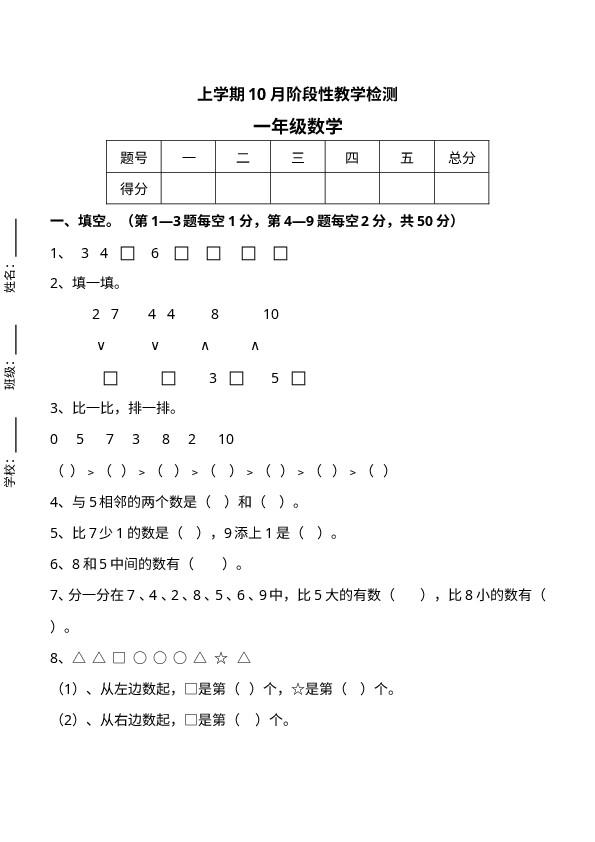 下一篇:新人教版一年级上册数学11月份试卷