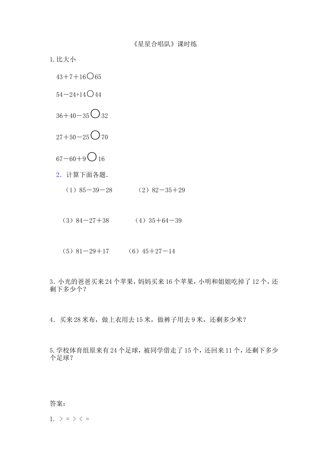 上一篇:二上数学第一单元课时练-1-3 100以内数的加减混合运算