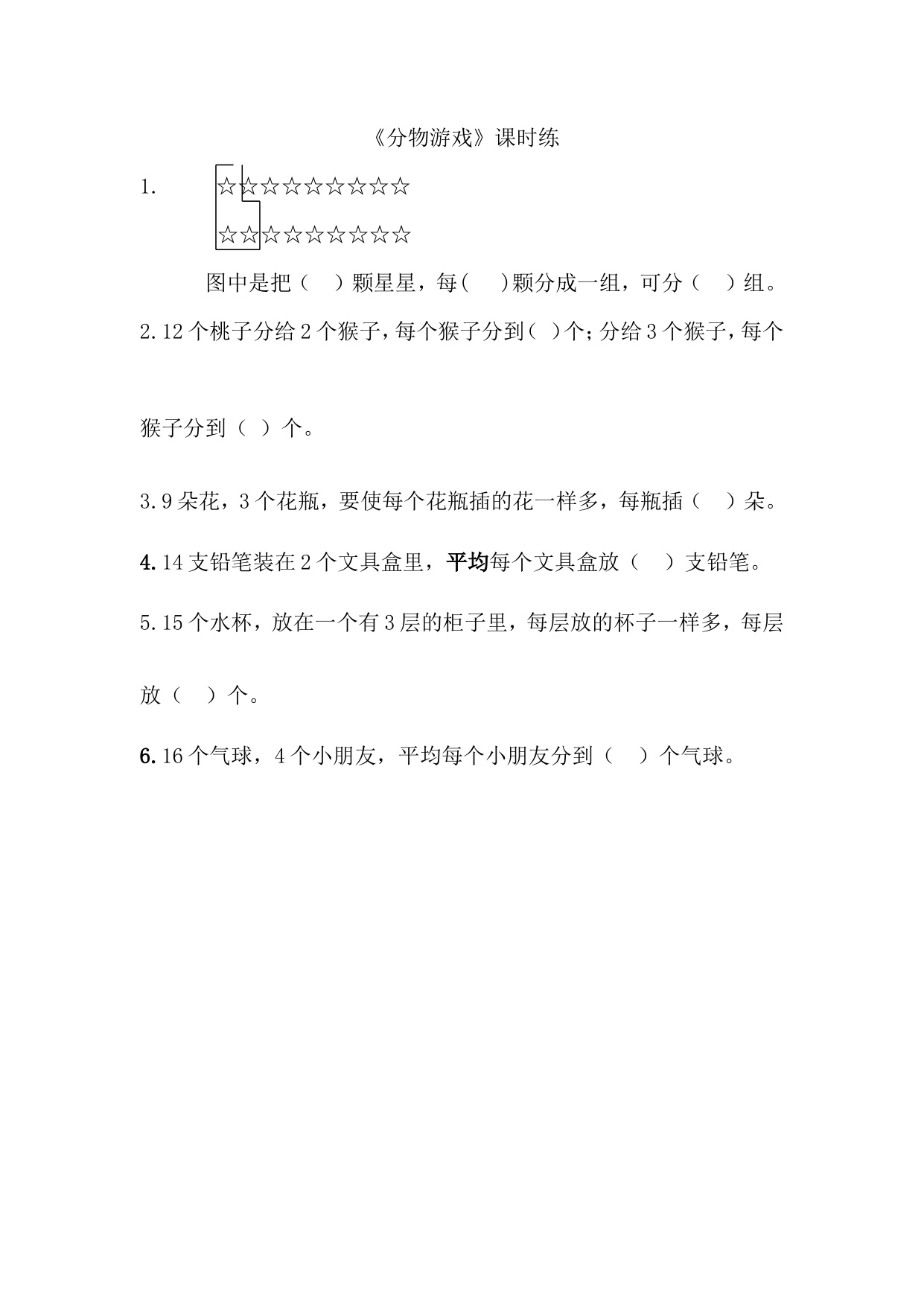 下一篇:二上数学第七单元课时练-7-2 平均分的两种情况