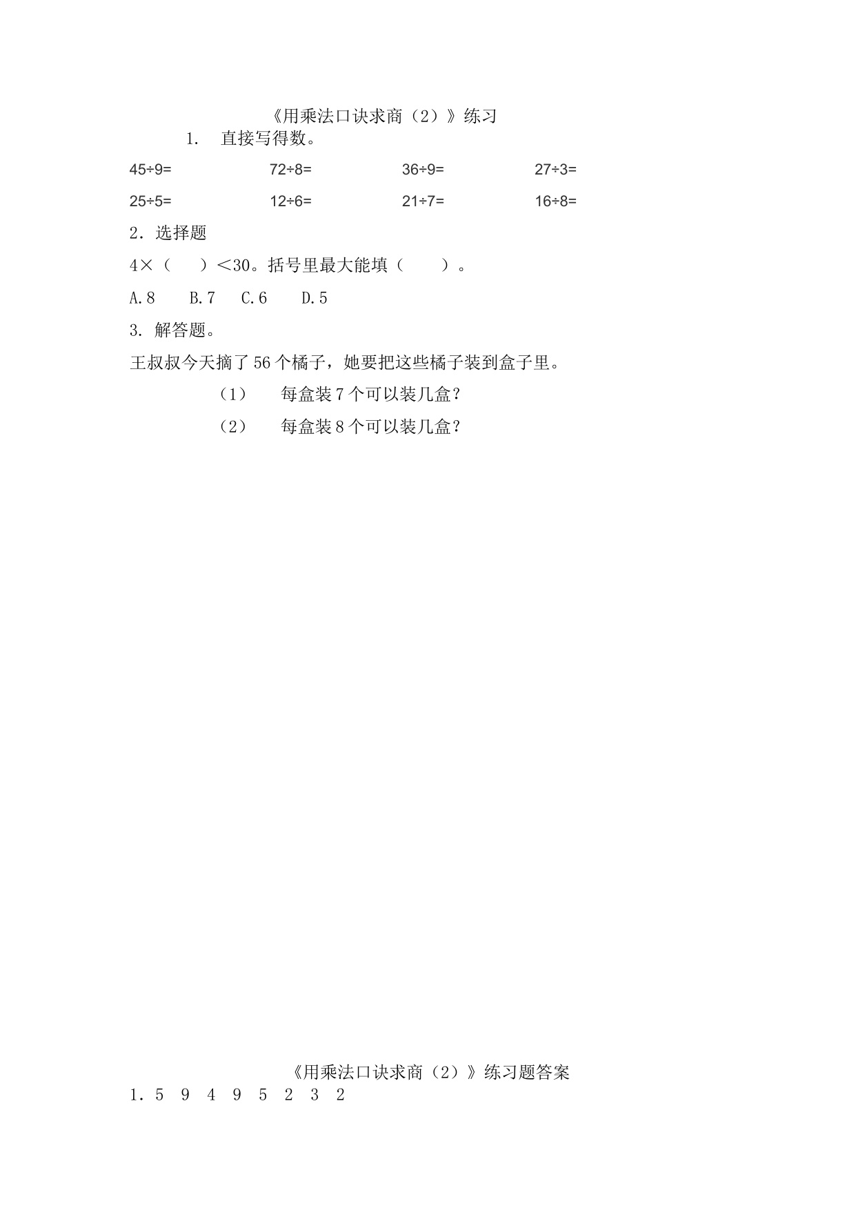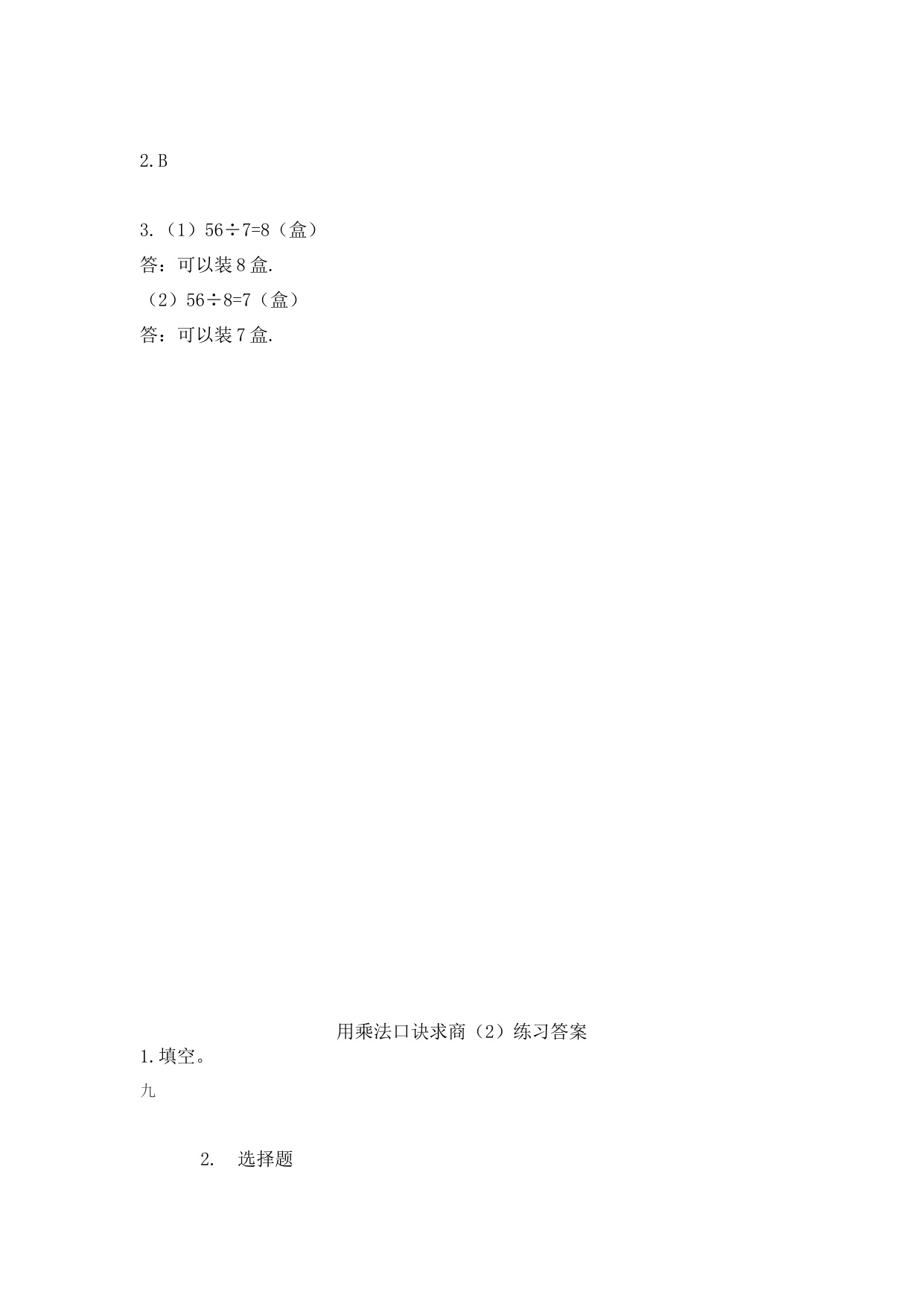二上数学第九单元课时练-9-2 用乘法口诀求商(2) 资料为Word格式,请下载后使用相应软件打开。