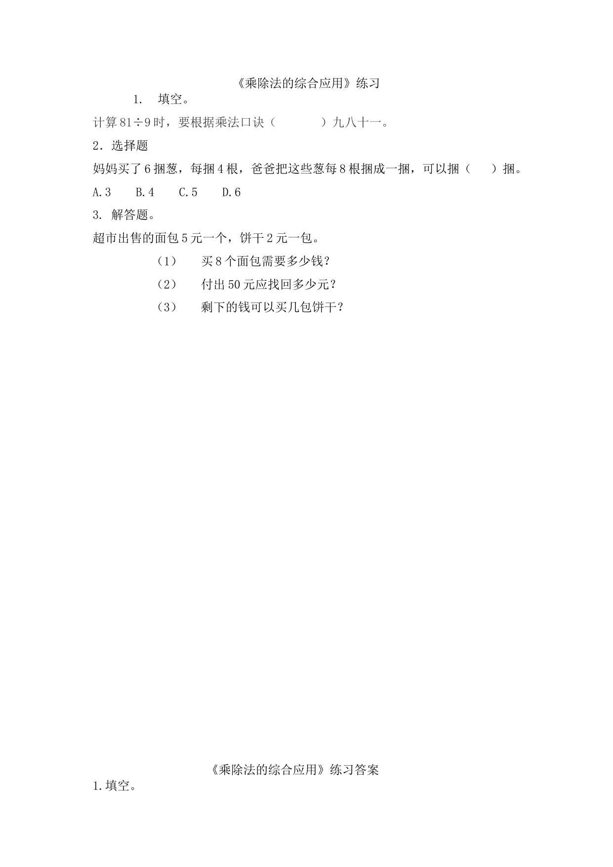 二上数学第九单元课时练-9-3 乘、除法的综合应用 资料为Word格式,请下载后使用相应软件打开。