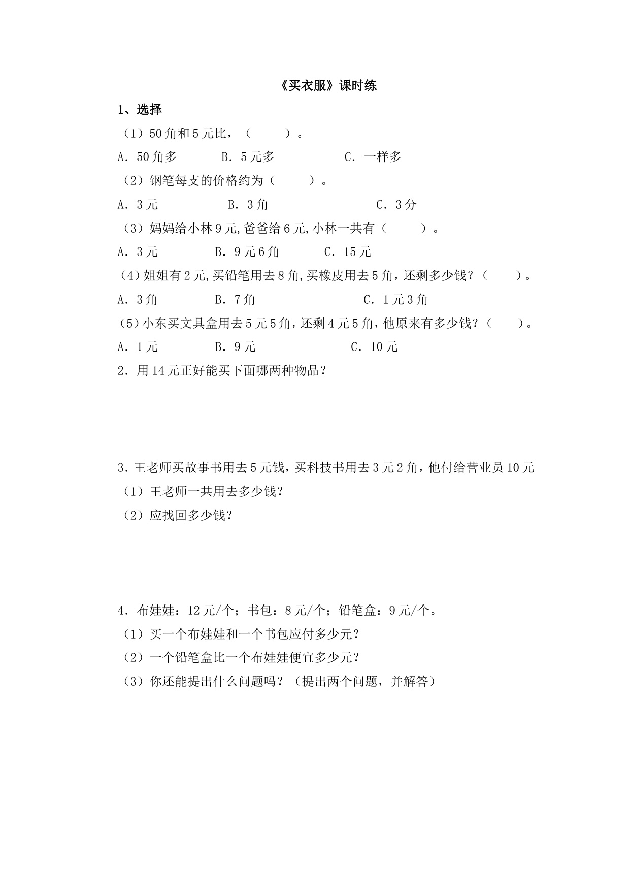 下一篇:二上数学第二单元课时练-2-3 解决简单的购物问题