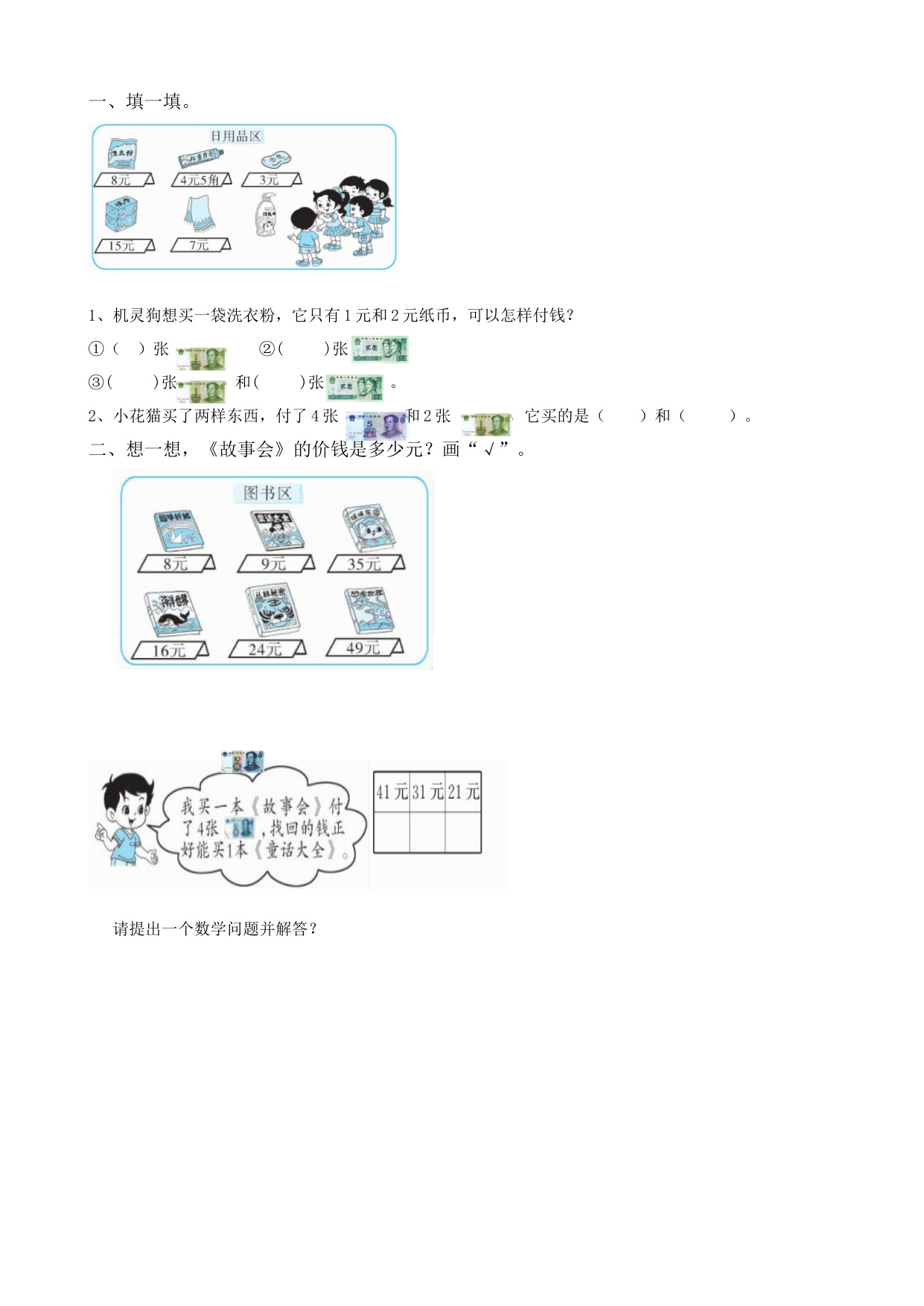 二上数学第二单元课时练-2-3 解决简单的购物问题