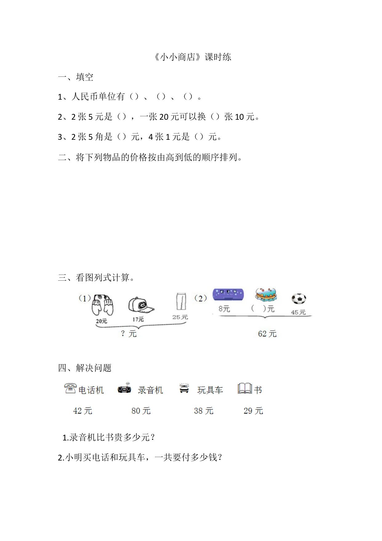 上一篇:二上数学第二单元课时练-2-3 解决简单的购物问题
