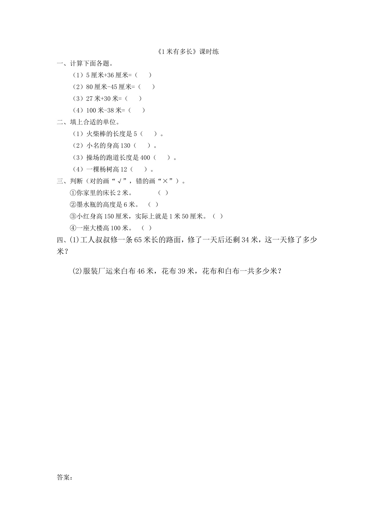 下一篇:二上数学第六单元课时练-6-3 米的认识(1)