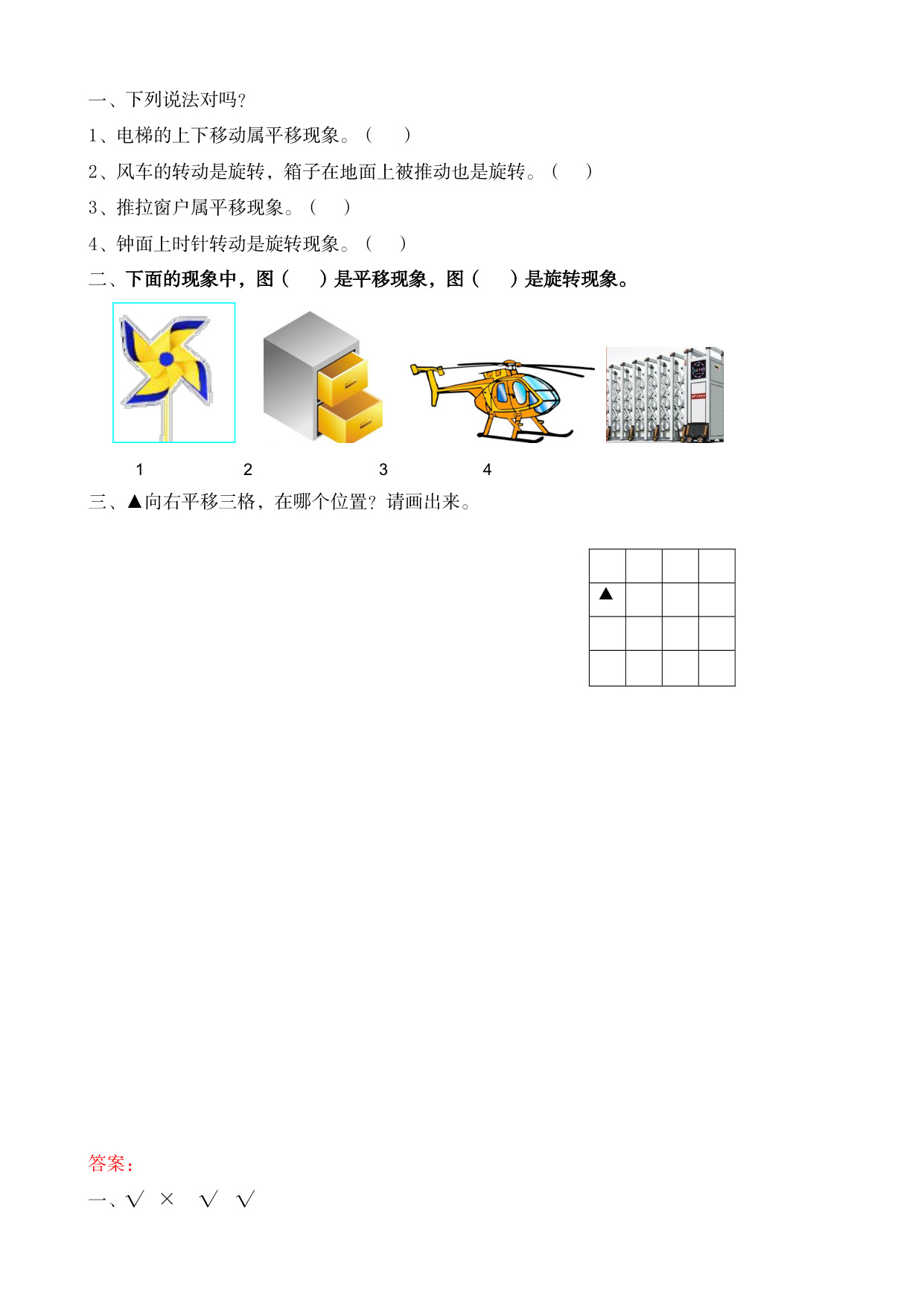 二上数学第四单元课时练-4-2 初步感知平移和旋转现象