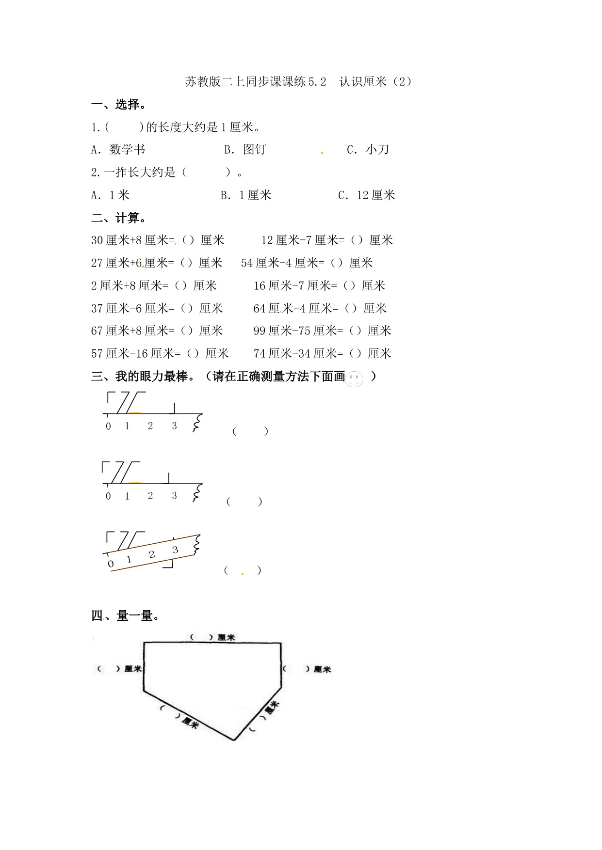 上一篇:二年级上册数学一课一练-52 认识厘米(1)-苏教版