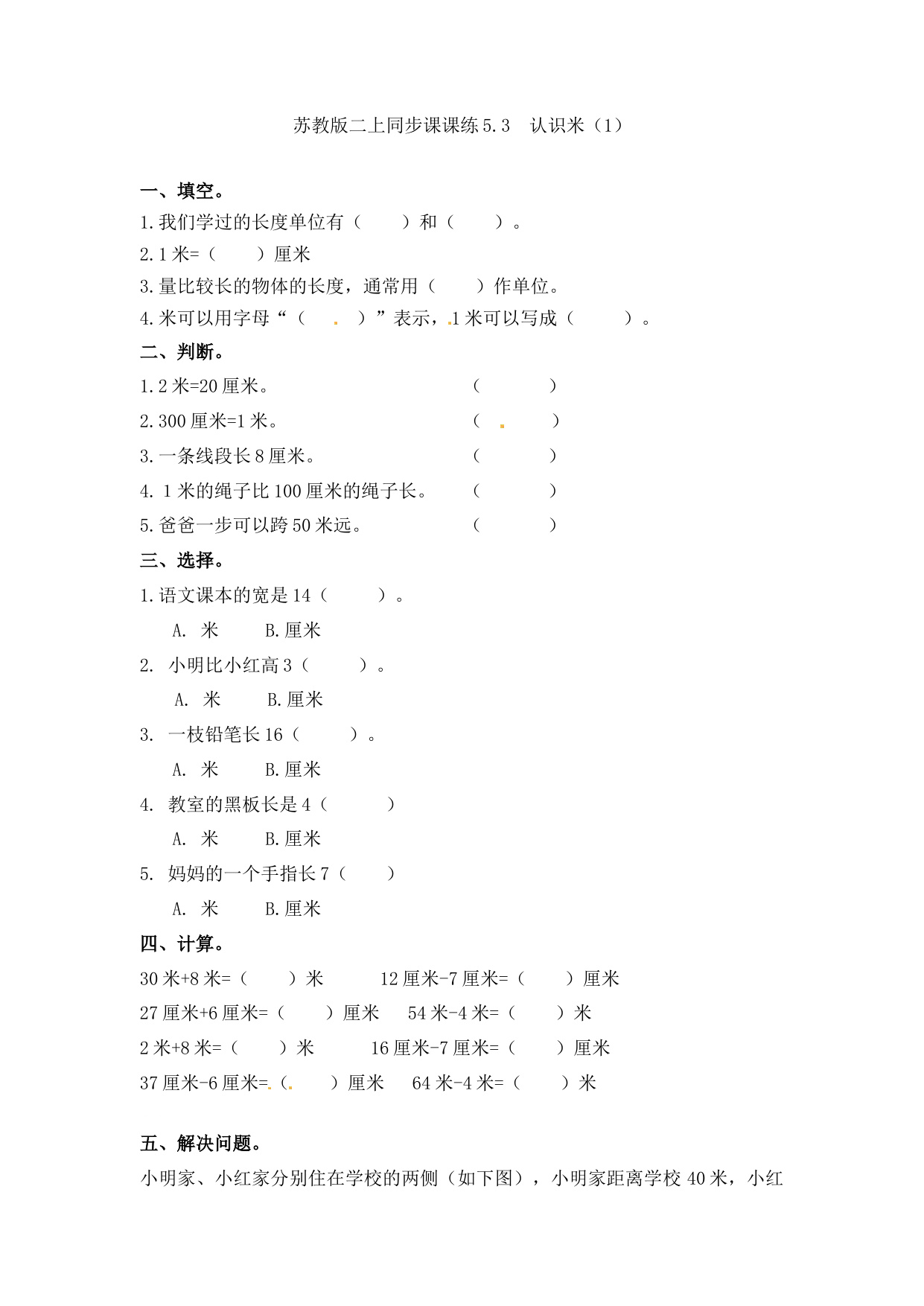 下一篇:二年级上册数学一课一练-53 认识米(2)-苏教版