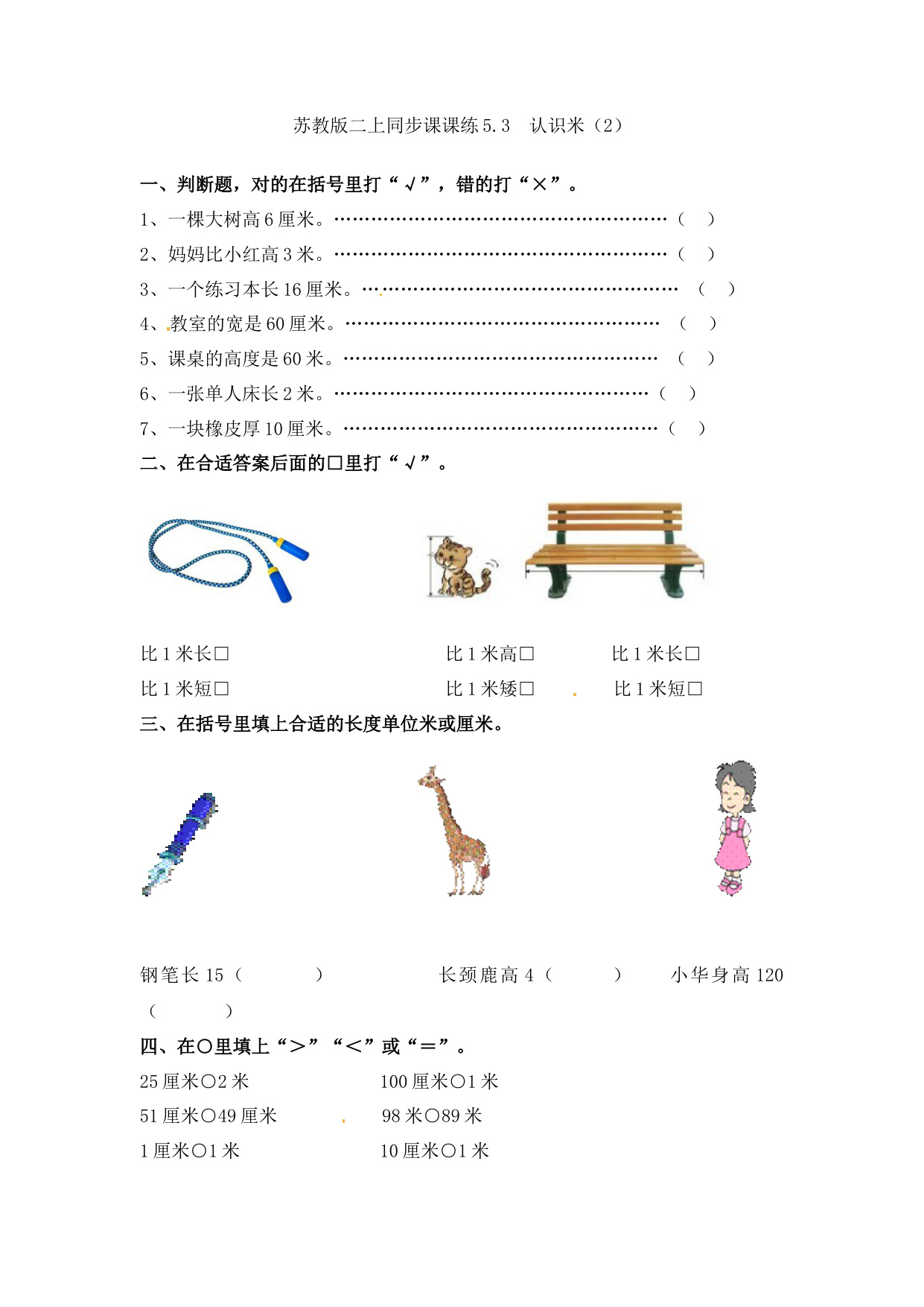 上一篇:二年级上册数学一课一练-53 认识米(1)-苏教版