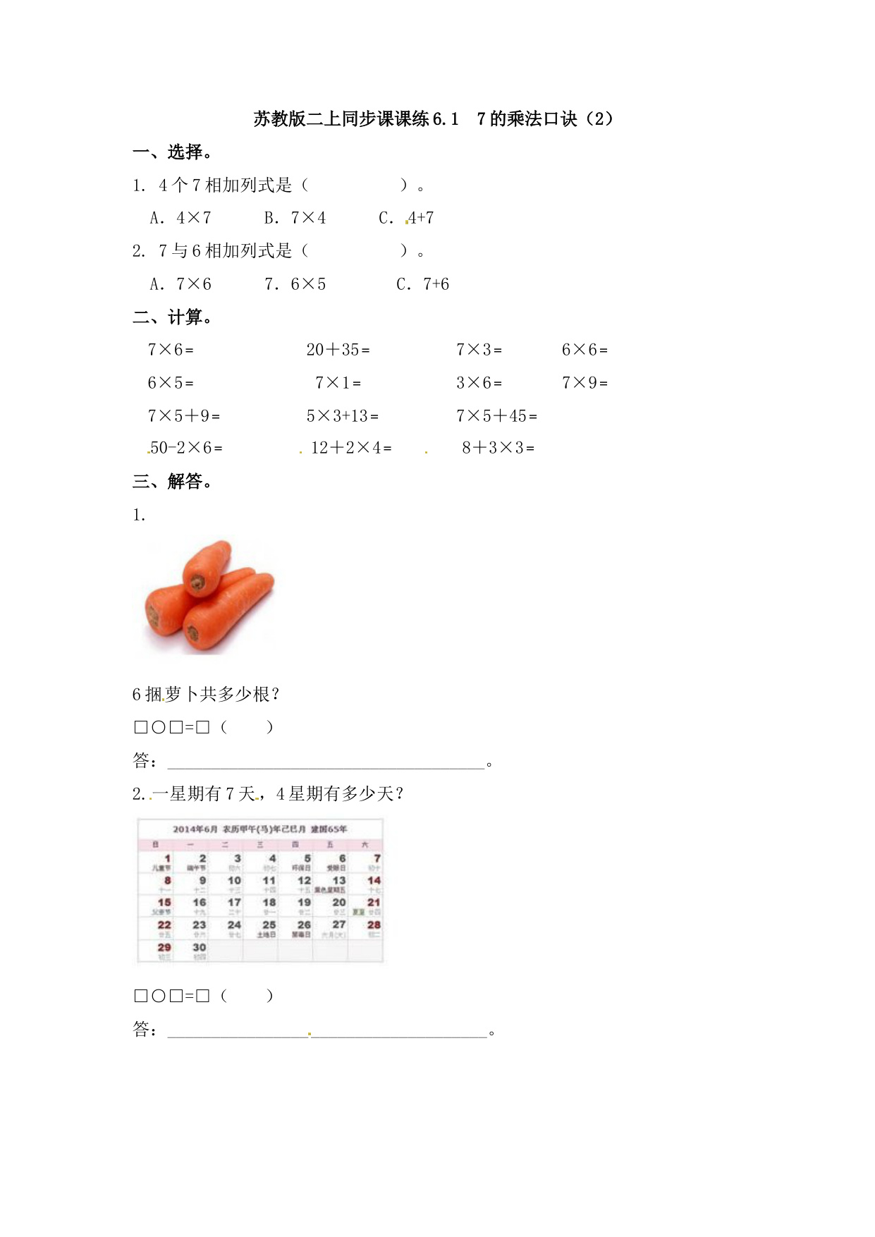上一篇:二年级上册数学一课一练-61 7的乘法口诀(1)-苏教版