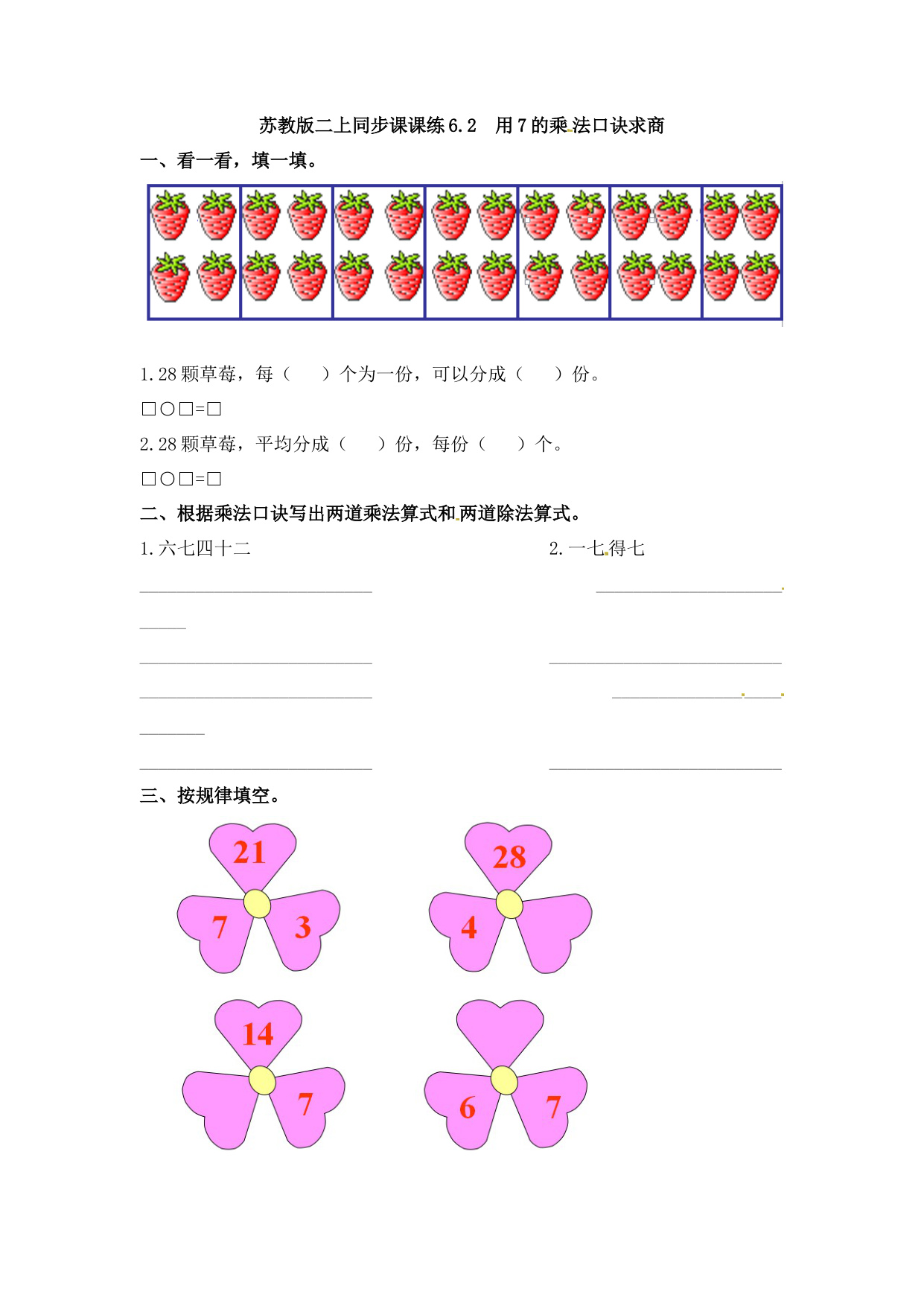 上一篇:二年级上册数学一课一练-61 7的乘法口诀(2)-苏教版